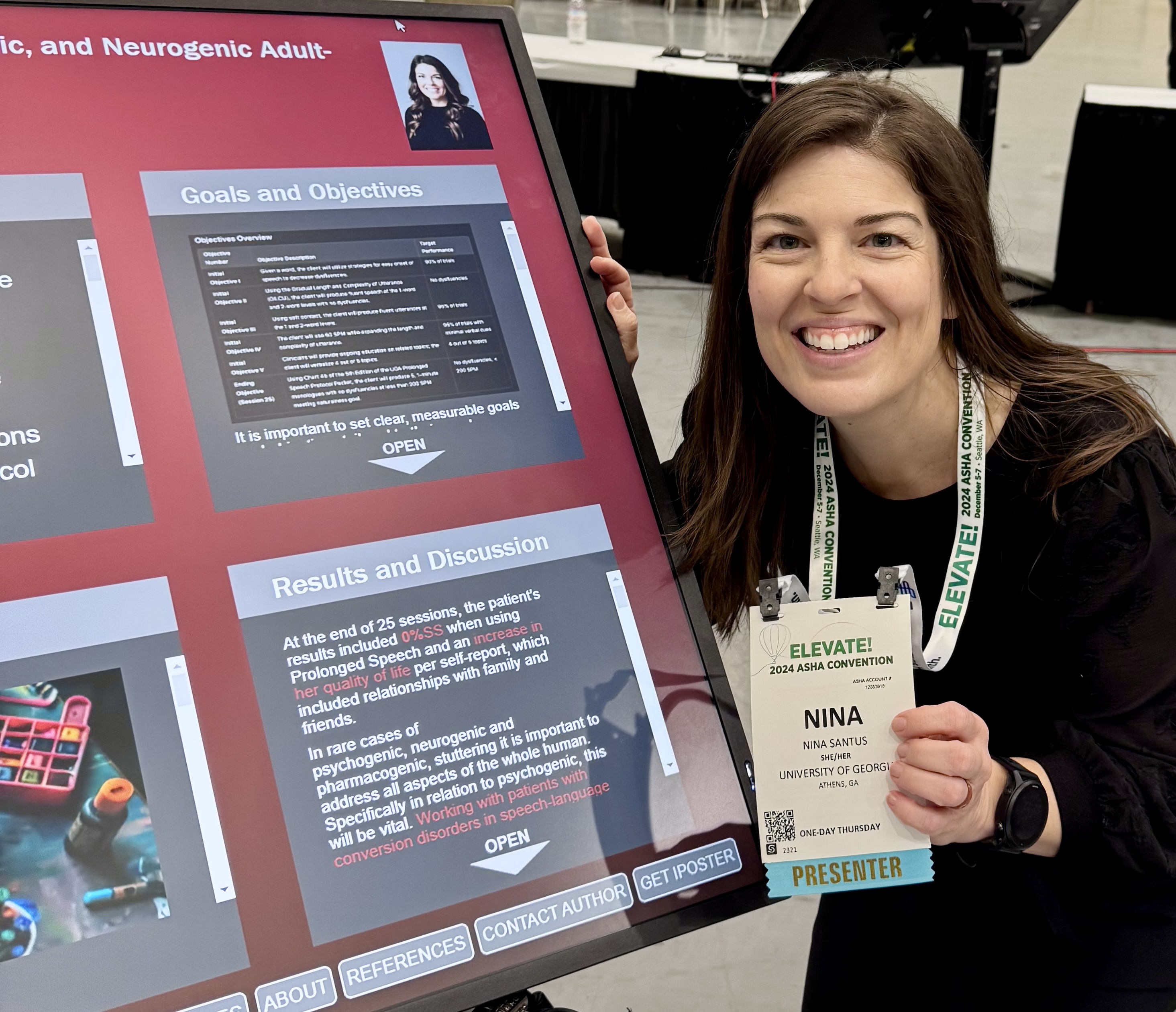 Speaker Biography: Nina Santus, Ph.D., CCC-SLP, is a Clinical Associate Professor in the Department of Communication Sciences and Special Education at the University of Georgia and a practicing clinician at the UGA Speech and Hearing Clinic. She earned her B.S. (2003) and M.S. (2005) in Speech-Language Pathology from Indiana University of Pennsylvania and completed her Ph.D. in Communication Sciences at UGA, where her research focused specifically on stuttering. With over 20 years of experience, particularly in treating fluency disorders and stuttering, Dr. Santus has worked in hospitals, skilled nursing facilities, private practice, and public schools.